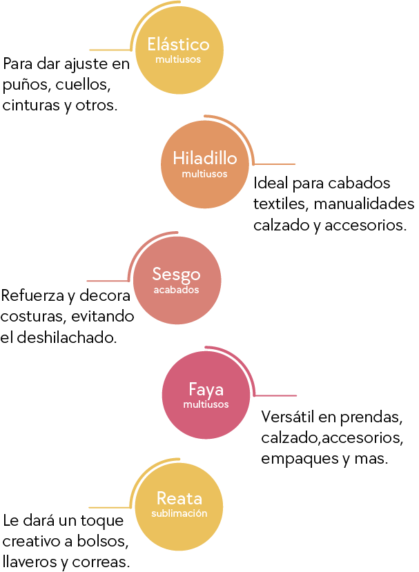 En CintaModa estamos comprometidos con ofrecer la mejor calidad en cintas textiles como faya, sesgo, hiladillo, elástico, reatas y otros productos relacionados. Nuestra búsqueda constante de excelencia nos ha llevado a importar materiales con técnicas innovadoras y materias primas de última generación garantizando productos de alto nivel sin perder la competitividad en precios.
